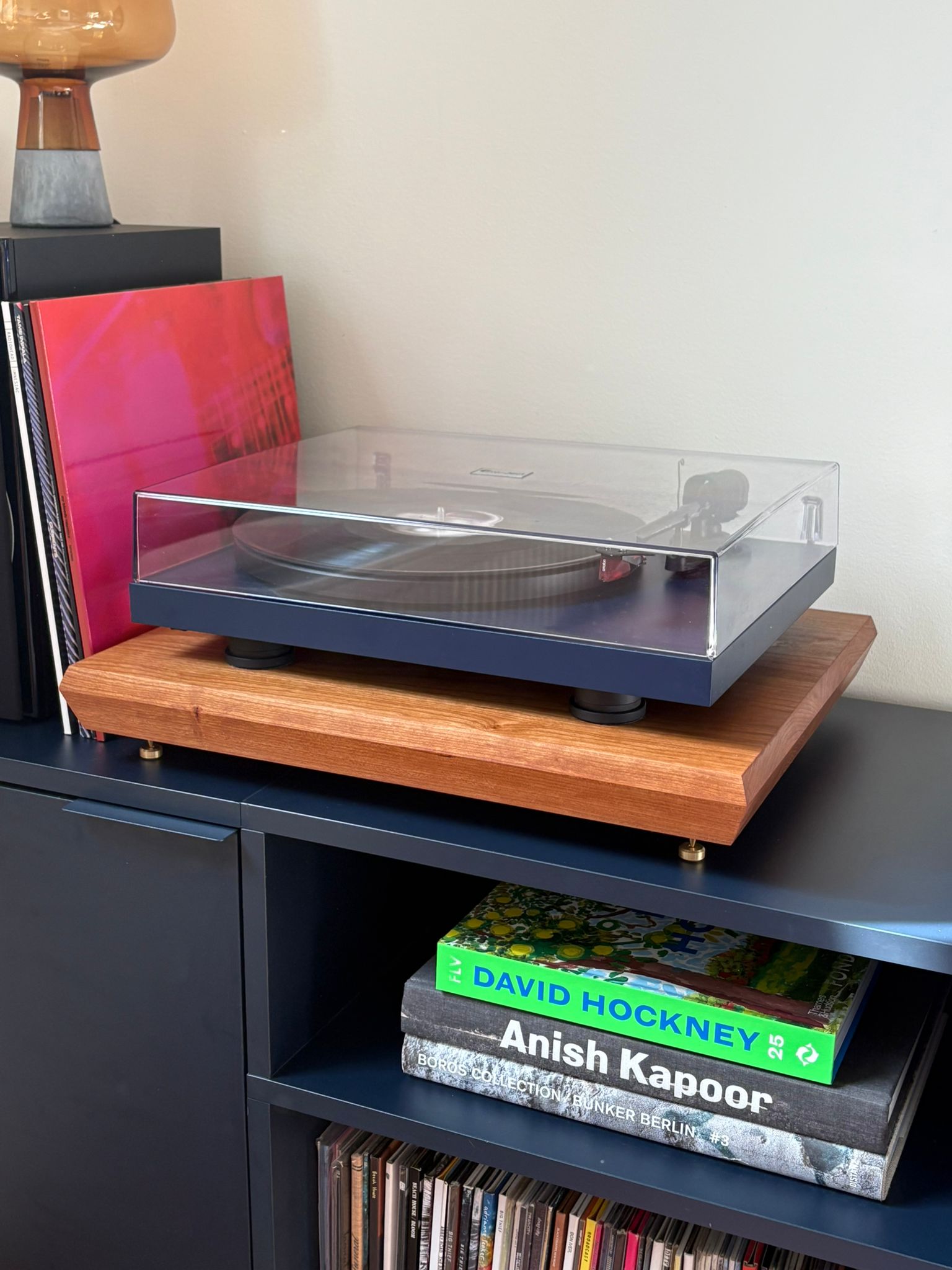 Ik heb deze plaat ontworpen omdat ik zelf merkte dat zelfs de kleinste trillingen het geluid kunnen beïnvloeden. Een platenspeler staat niet in een vacuüm: elke voetstap, elke trilling van de vloer, kan de naald beïnvloeden. De Dizzy is gemaakt om dat tegen te gaan. Met een combinatie van massief hout (zoals mahonie, essen, eiken of kersen) en speciaal ontworpen pootjes, minimaliseert deze plaat resonanties. Zo hoor je de muziek zoals die bedoeld is: puur, helder en zonder storende bijgeluiden.