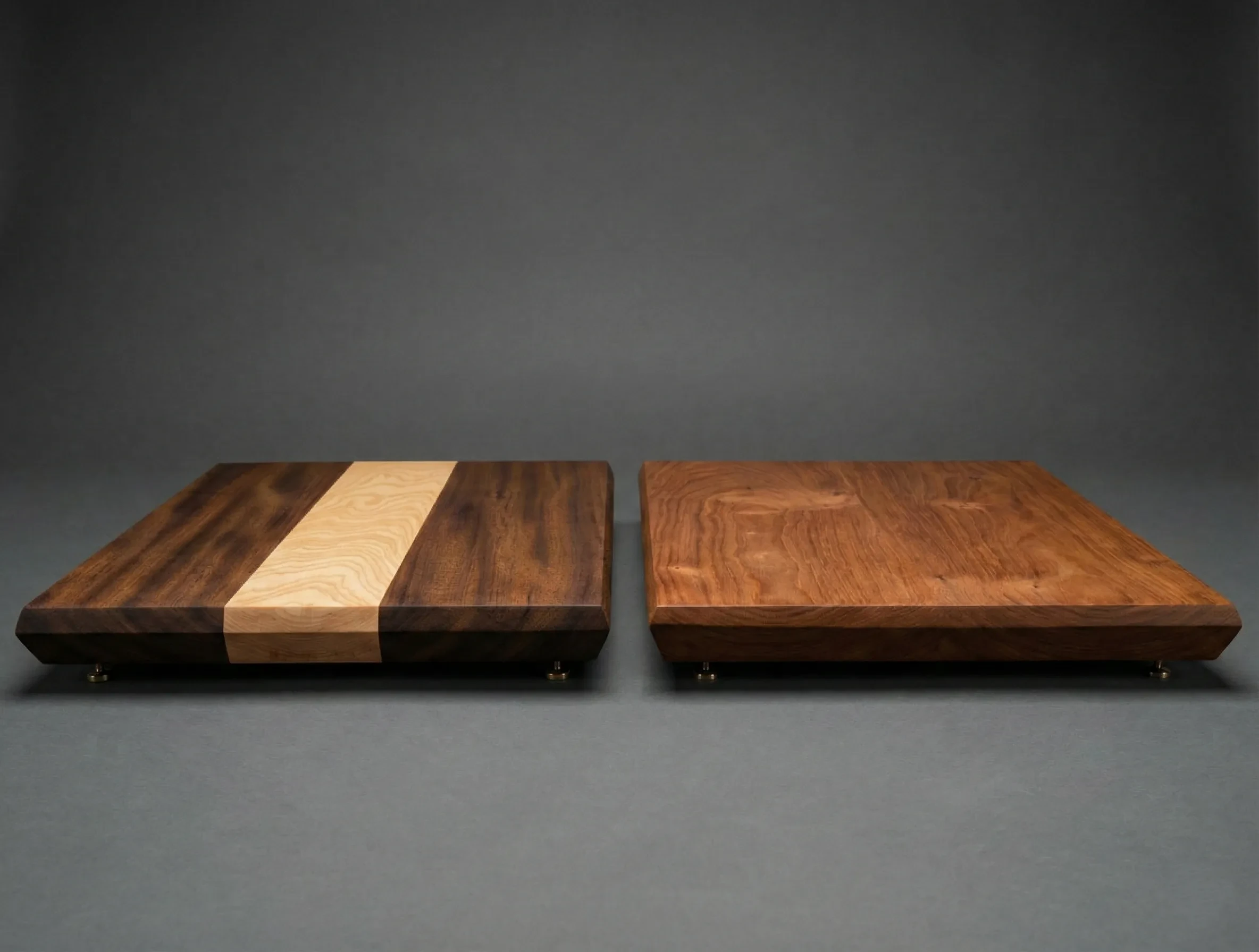 Mijn filosofie is simpel: massa is essentieel. Waar de industrie kiest voor lichte, holle constructies, kies ik voor zware, massieve houtsoorten. Waarom? Omdat massa energie absorbeert en rust brengt. Mijn meubels en resonantieplaten zijn ontworpen om uw apparatuur mechanisch te aarden en microfonie te elimineren.